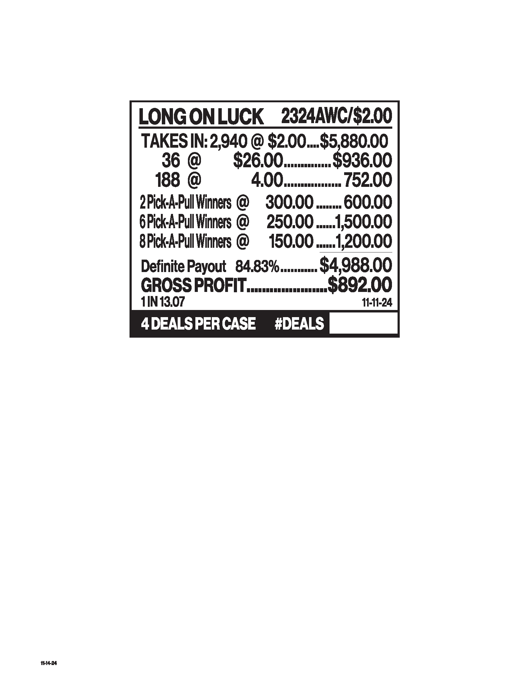300 Payout: