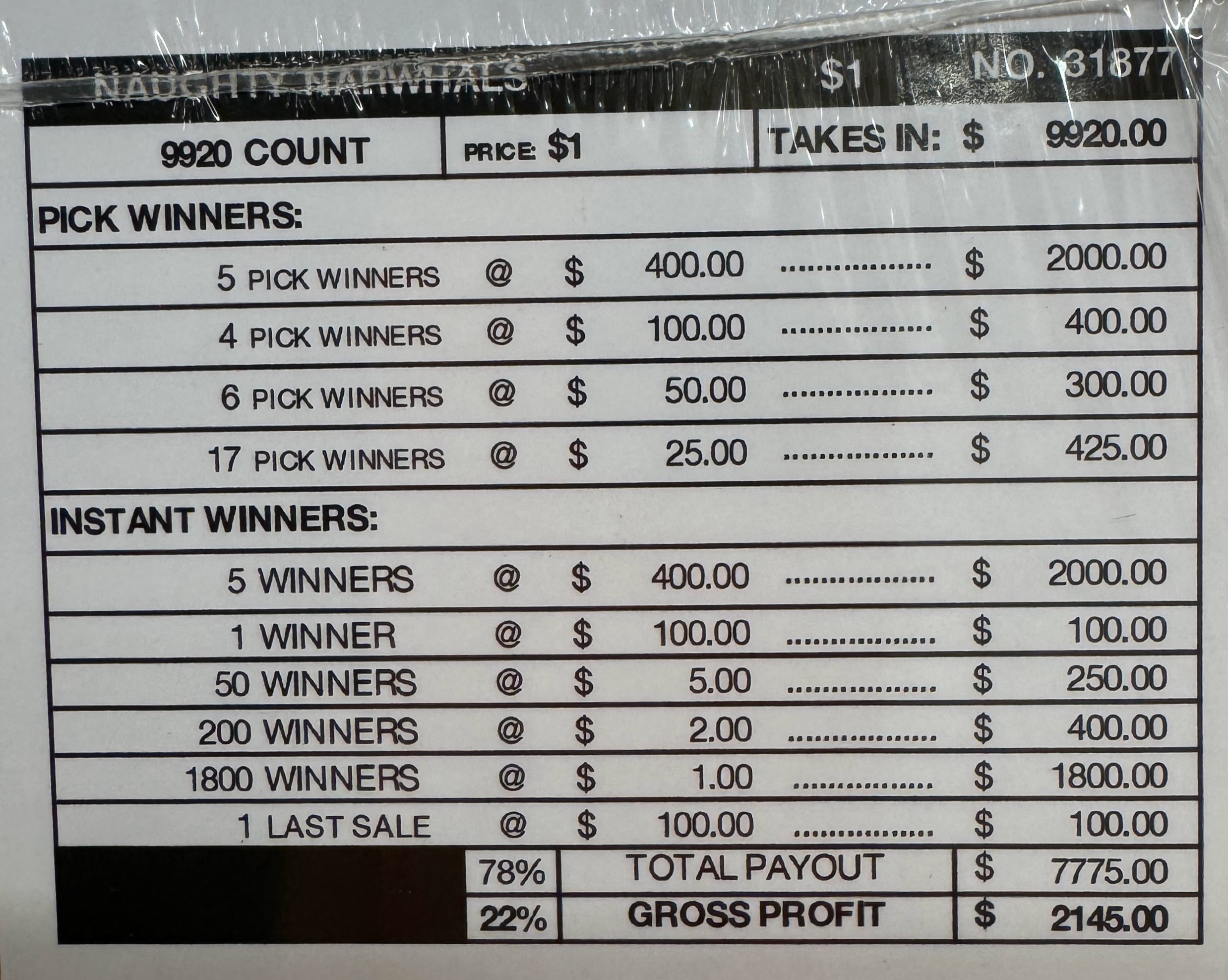 Prize Payout: