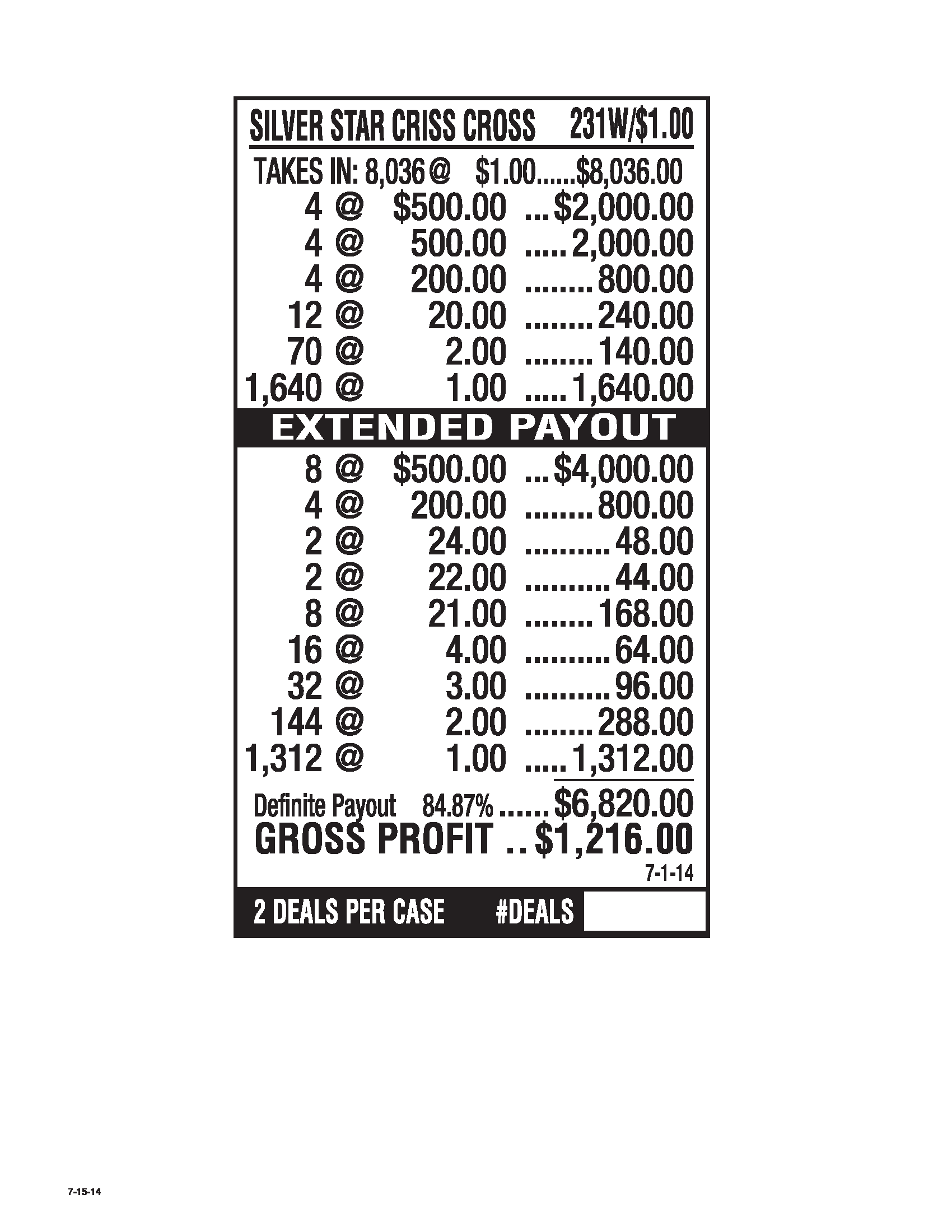 500 Payout: