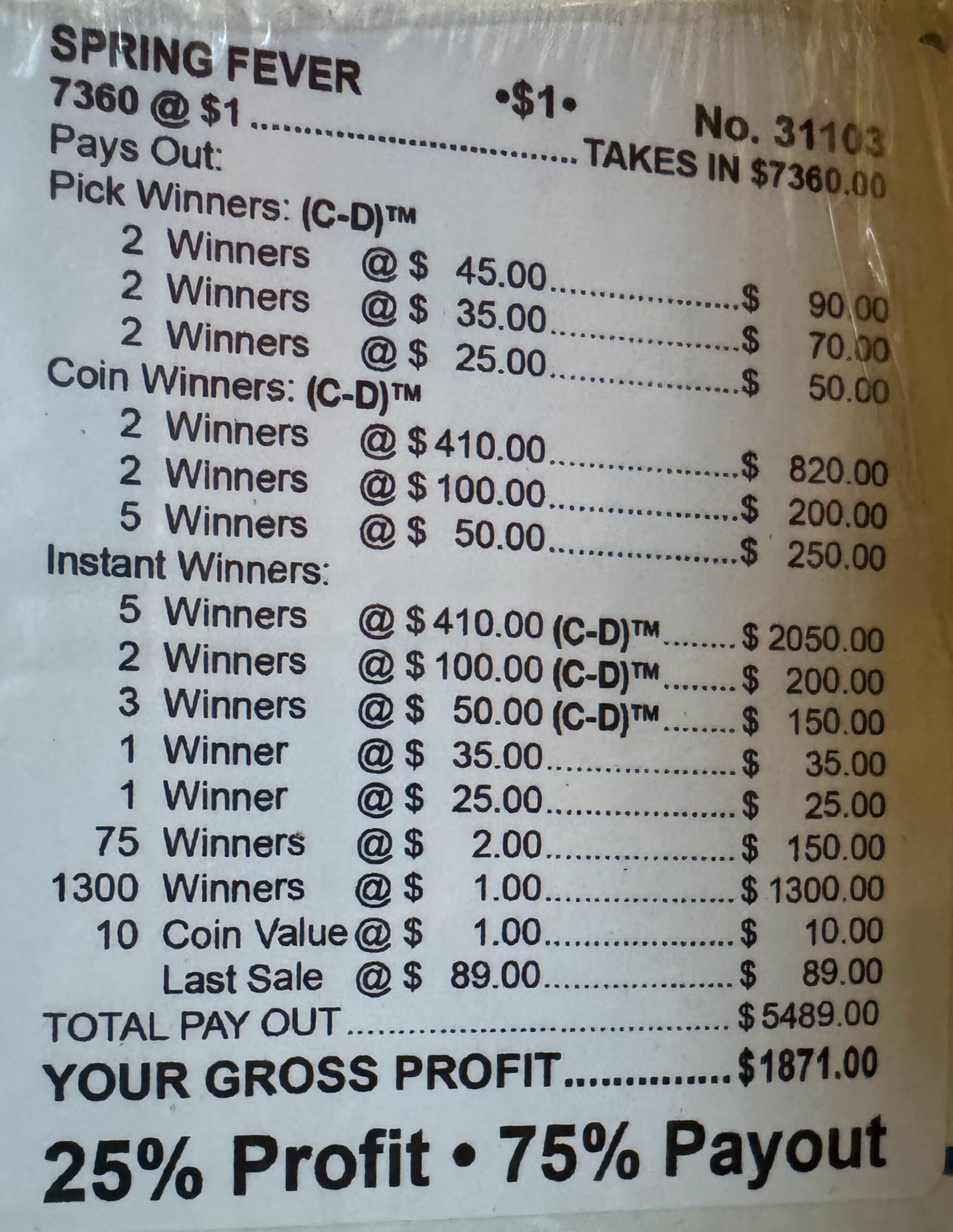 Less Then $100 Payout: