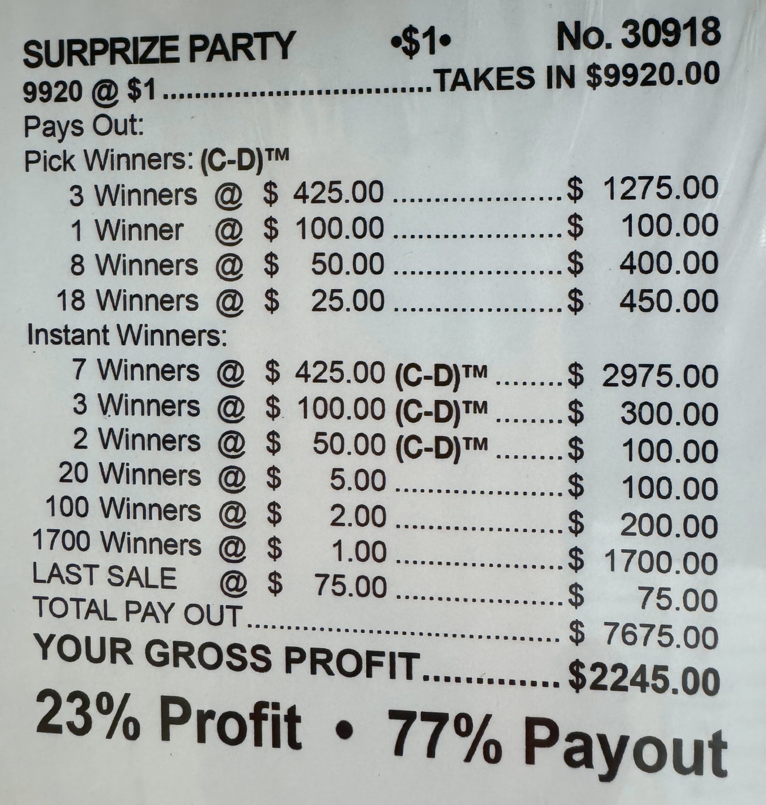 Prize Payout: